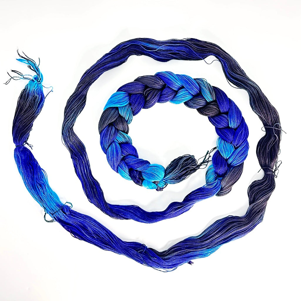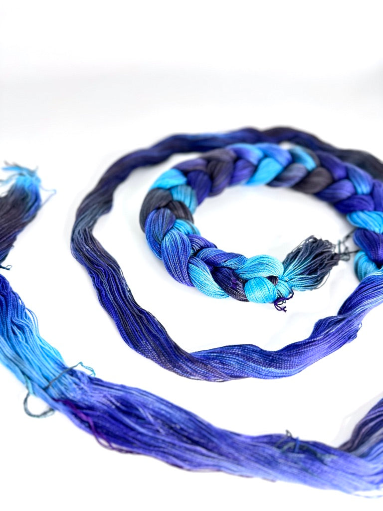 I use an eco-friendly hand-painted process to create colors inspired by bird species from around the world. Each warp has a unique personality and color. Can be used alone, with other hand dyed warps,  solids, or whatever you dream up! Hand painted in Durham NC.